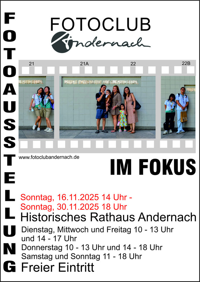Der Fotoclub Andernach lädt Sie herzlich ein zur Eröffnung seiner diesjährigen Fotoausstellung